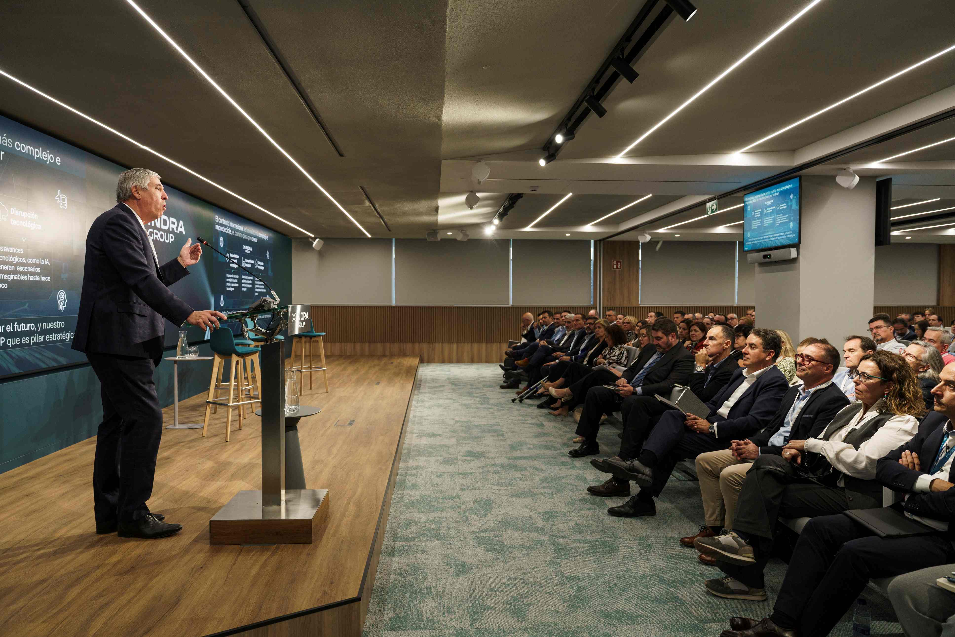 Indra Group CEO José Vicente de los Mozos made a brief presentation of the company, highlighting its different lines of business and pointing to the needs that are set to arise during a period of comprehensive transformation. “Administrations, training centers and companies must work together to ensure that this transformation comes to fruition and that this moment in time serves to guarantee an excellent future for young people”.